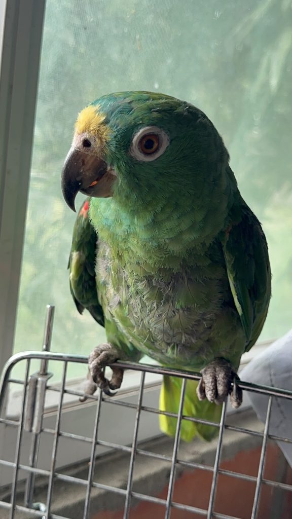 Lo cuidaban con amor, sí, pero también con desconocimiento. Durante tres décadas, este lorito habitó una casa como mascota, lo que generó alteraciones en su conducta natural.